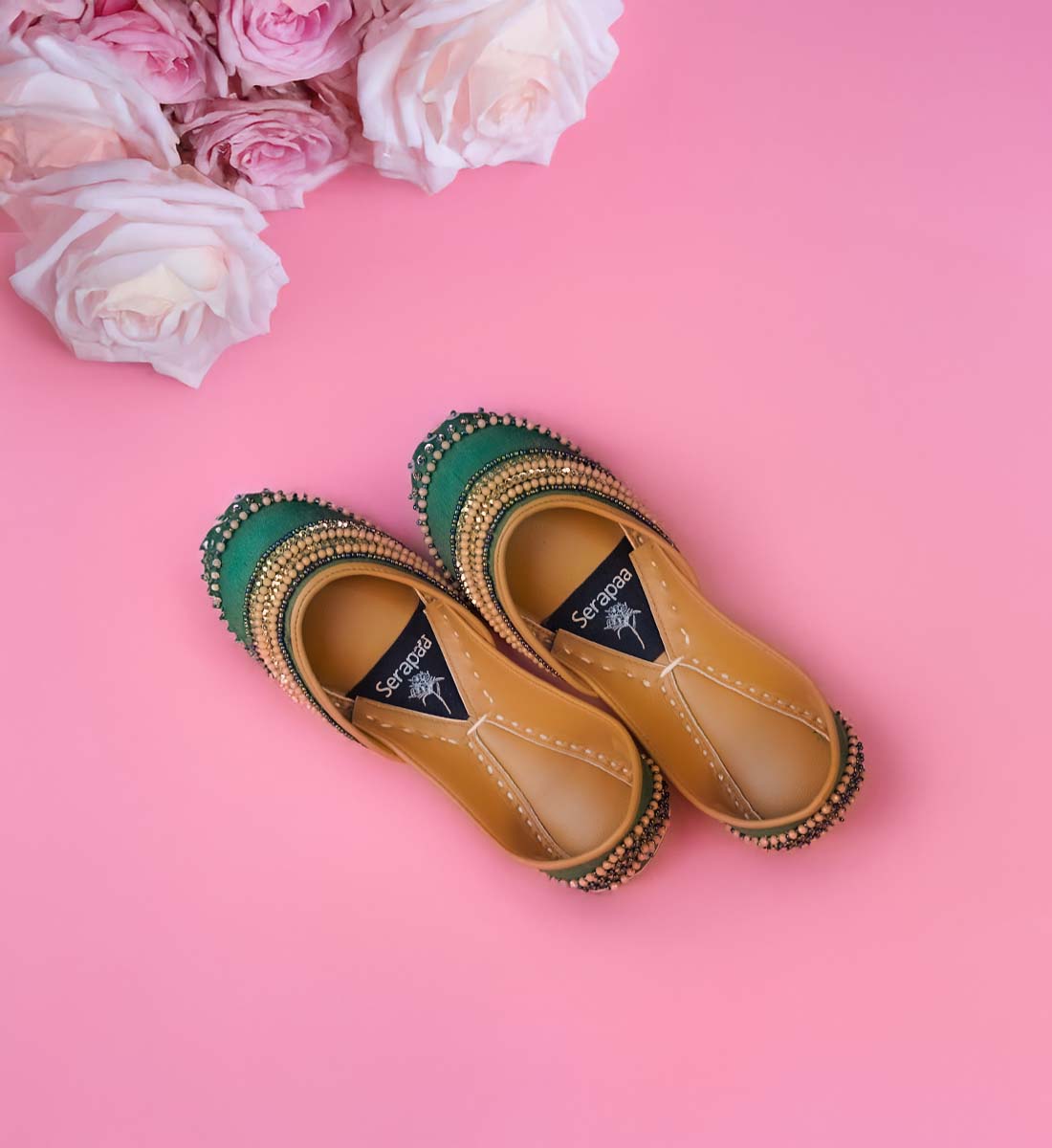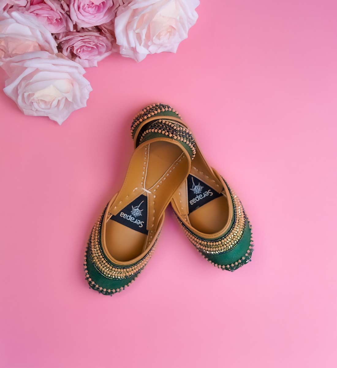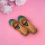 Say hello to Zayra, a jutti that embodies festive spirit, royal hues, and timeless craftsmanship. Drenched in deep emerald green and accentuated with golden beadwork, Zayra is your go-to for weddings, celebrations, and every moment in between that deserves a little extra sparkle.